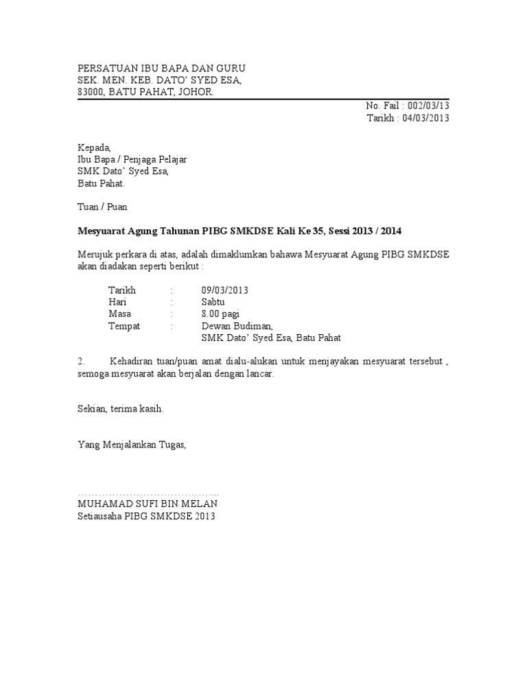Contoh Surat Panggilan Mesyuarat Pibg Pdf