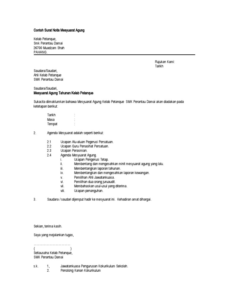 Contoh Surat Notis Mesyuarat Agung Pdf